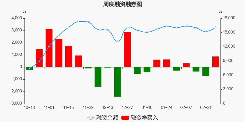 天洋新材本周(2025/02/24-2025/02/28)累计跌幅达0.38%,截至2月28日最新股价报收7.91元。从增量上来看,2月24日至2月28日融资买入交易规模4821.31万元,融资偿还规模3950.3万元,期内融资净买入871.01万元。从存量上来看,截止3月2日,天洋新材融资融券余额1.61亿元,其中融资余额规模1.61亿元,融券余额规模0元。