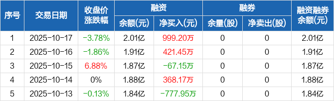 天洋新材:融资净买入999.2万元,融资余额2.01亿元(10-17)
