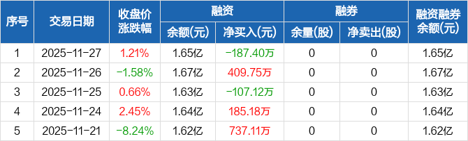 天洋新材:融资净偿还187.4万元,融资余额1.65亿元(11-27)