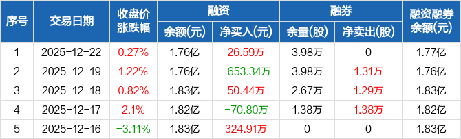 天洋新材:融资净买入26.59万元,融资余额1.76亿元(12-22)