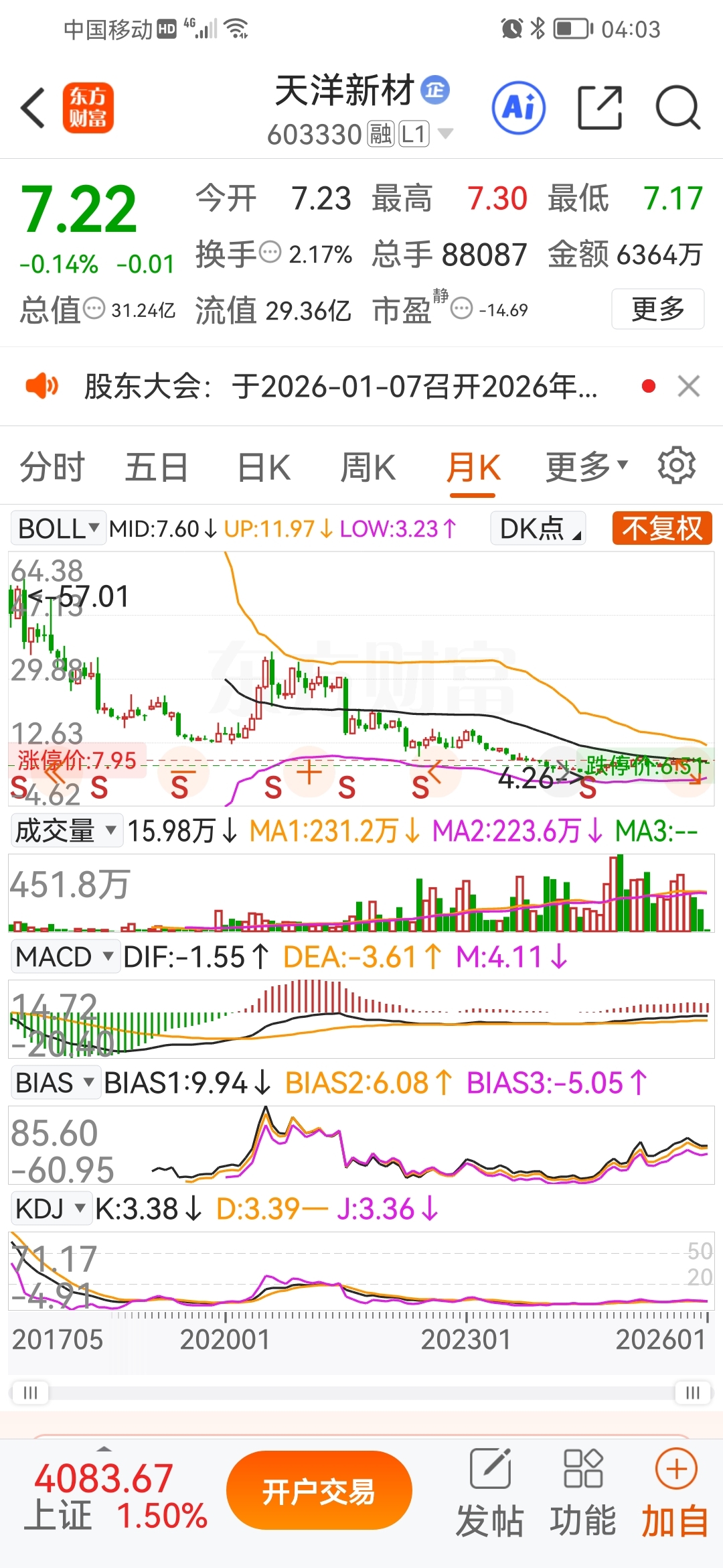 $天洋新材(SH603330)$ #复盘记录# 月线级别macd底背离,越跌越买