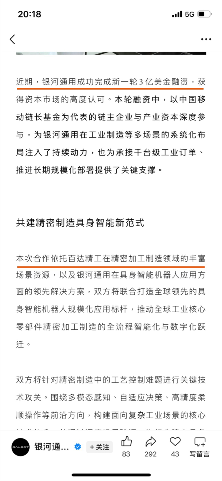 $百达精工(SH603331)$ $锋龙股份(SZ002931)$ 优必选23年年底上市,拿到钱就收购锋龙,同理,银河通用刚融资到了3亿美金(约21亿人民币)也可以收购百达精工!不冲突的吧?明年是人形机器人元年,而精密制造企业就像人工智能的CPO!所以这就是为什么优必选选择锋龙股份,因为精密制造企业对于生产机器人来讲特别重要。所以明年精密制造企业非常吃香,特别是和机器人公司走得近的上市公司。