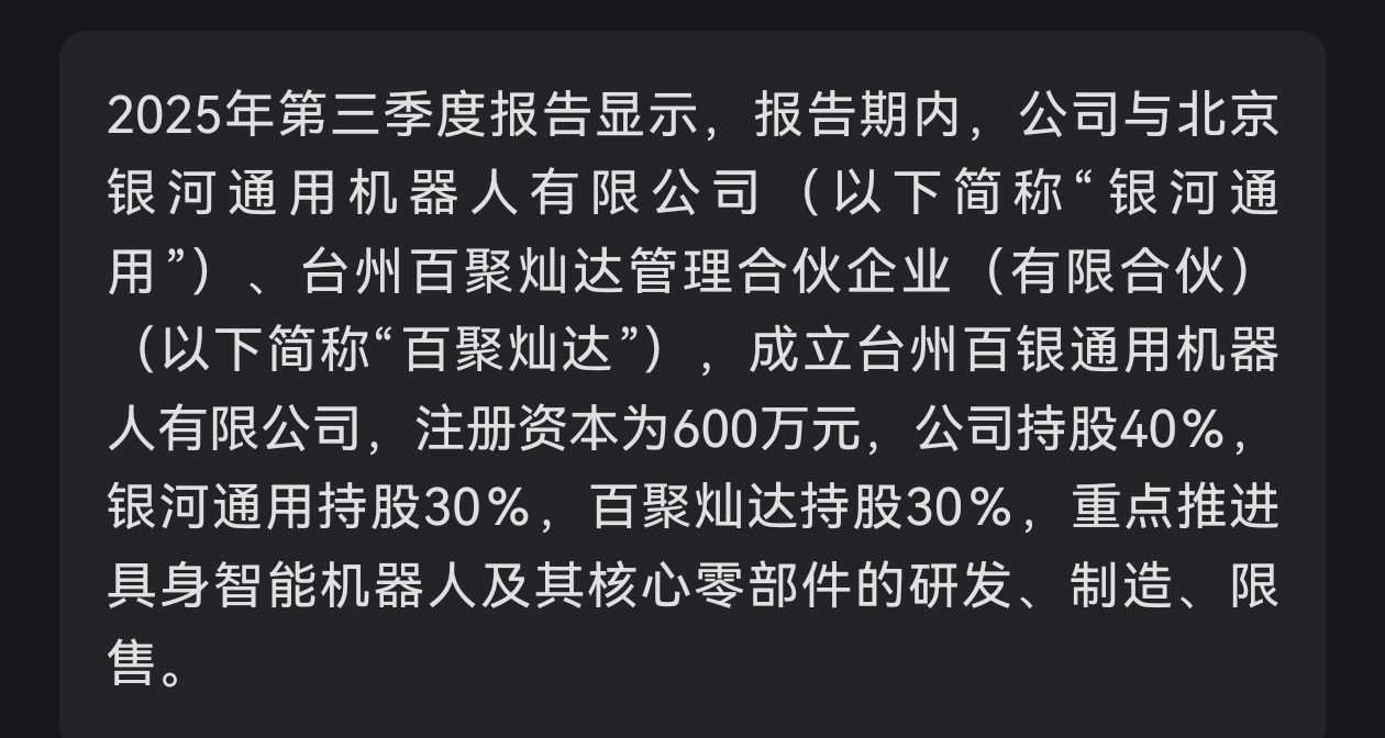 $百达精工(SH603331)$ 银河通用上春晚,百达凭这个这个合资的子公司,不知道有多少个板的想象空间了