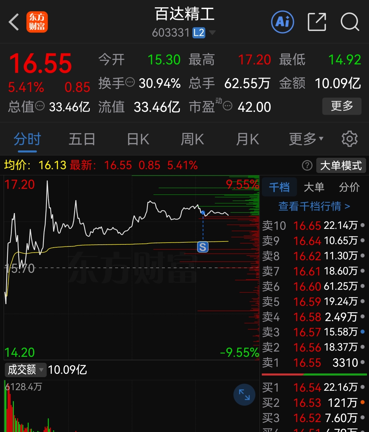 $百达精工(SH603331)$ 下车了,今天的走势有点看不懂了,只赚自己认知内的钱就好了