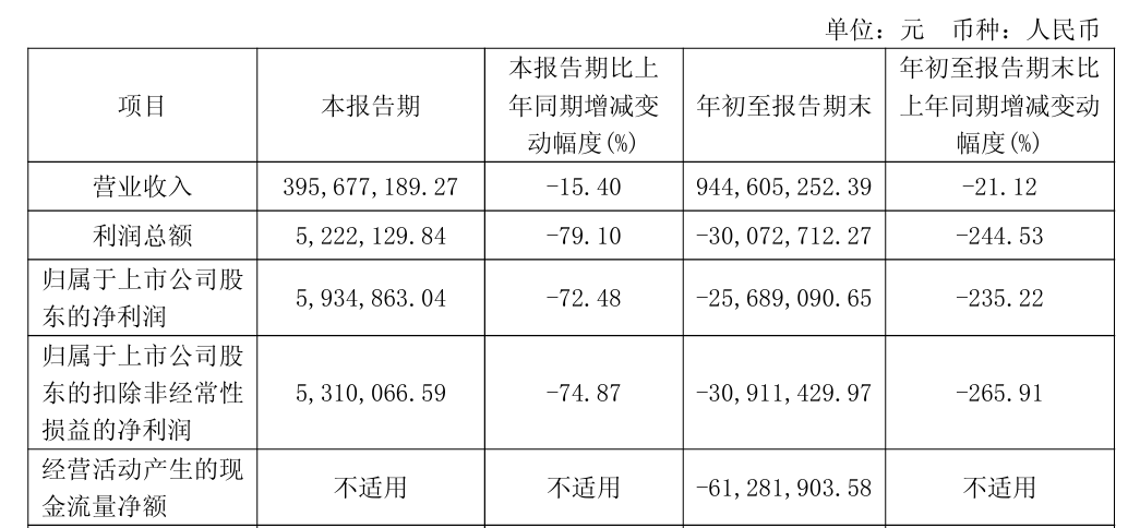 第三季度单季,尚纬股份实现营业收入3.96亿元,同比下降15.40%;归属于上市公司股东的净利润593.49万元,同比下降72.48%。