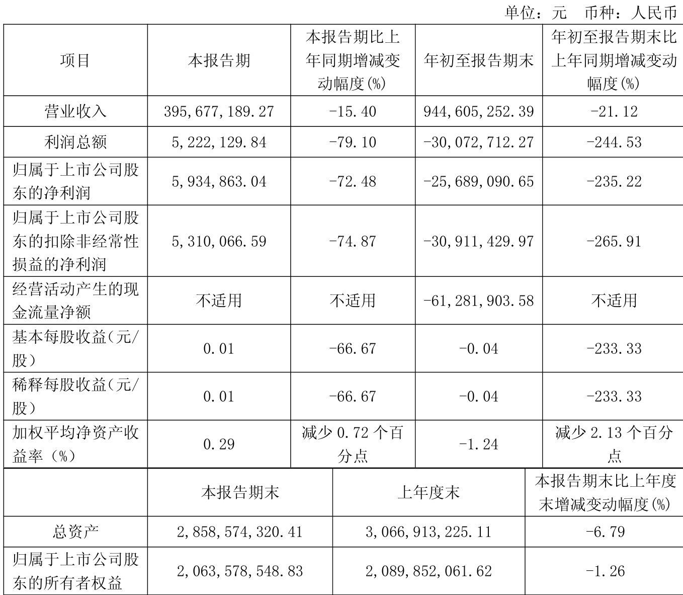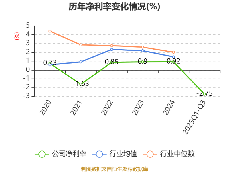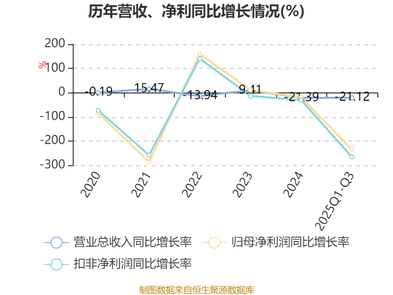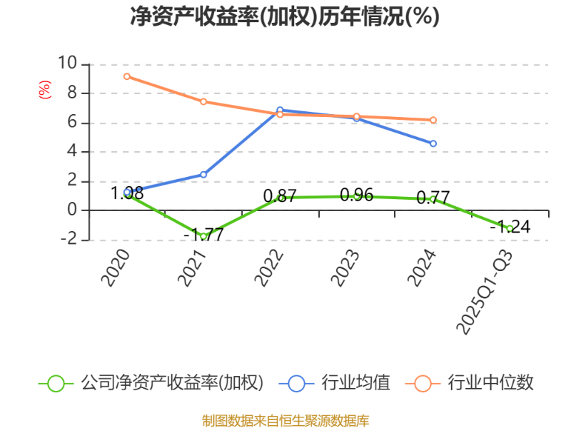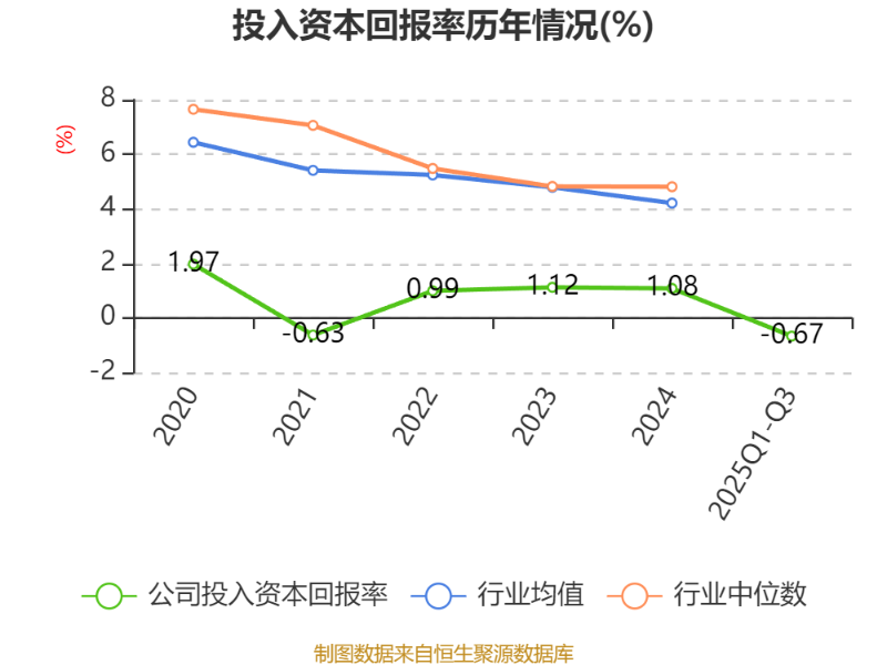 盈利能力方面, 2025年前三季度公司加权平均净资产收益率为-1.24%,同比下降2.13个百分点。公司2025年前三季度投入资本回报率为-0.67%,较上年同期下降1.79个百分点。