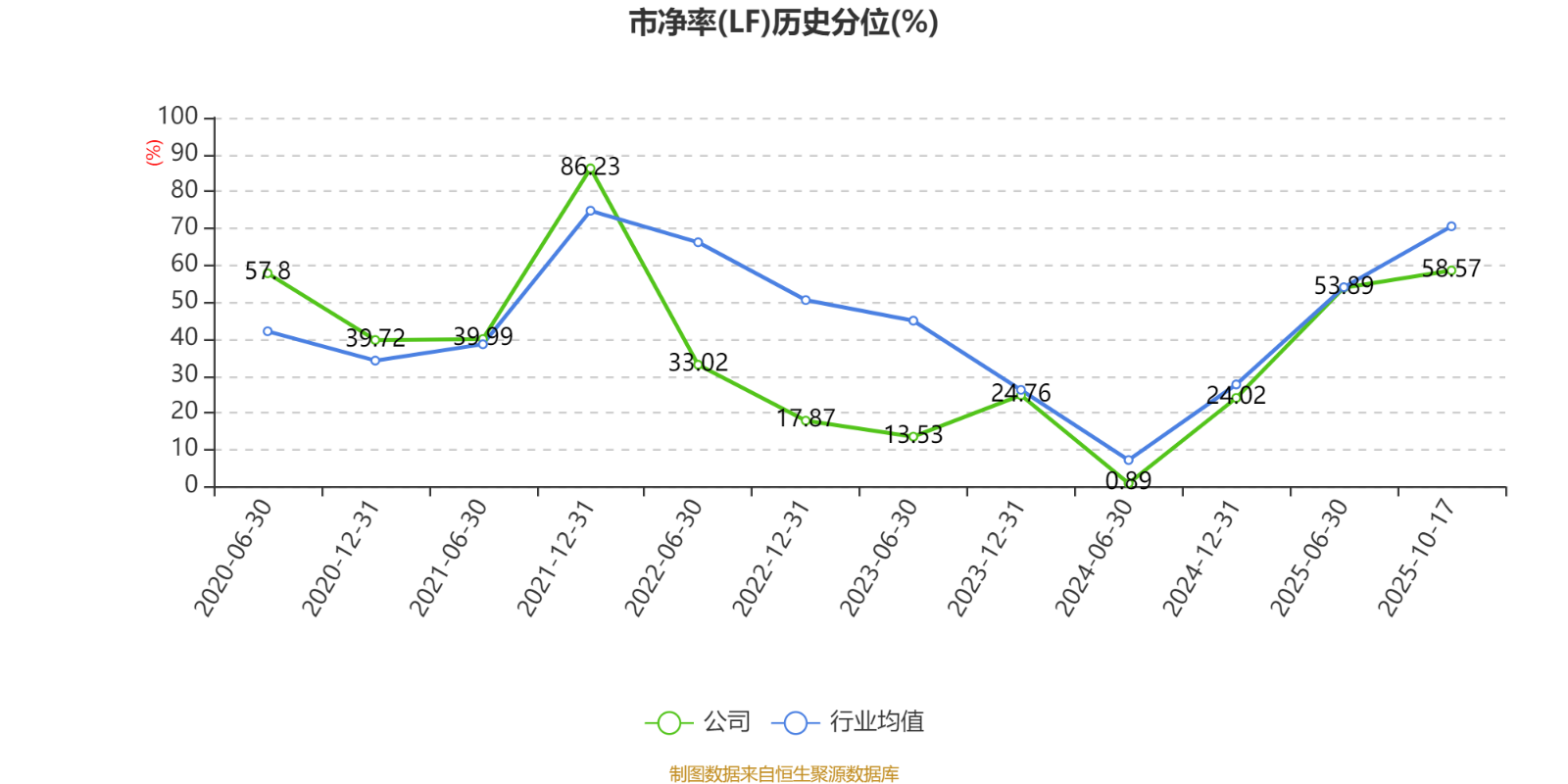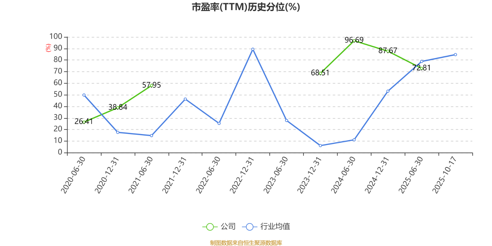 市盈率、市净率为负时,不显示当期分位数,会导致折线图中断。