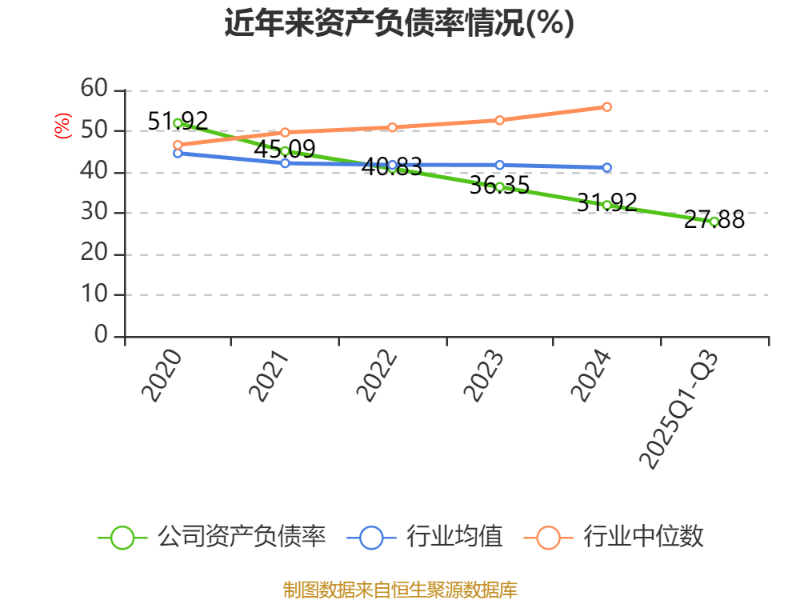 2025年前三季度,公司流动比率为2.88,速动比率为2.42。