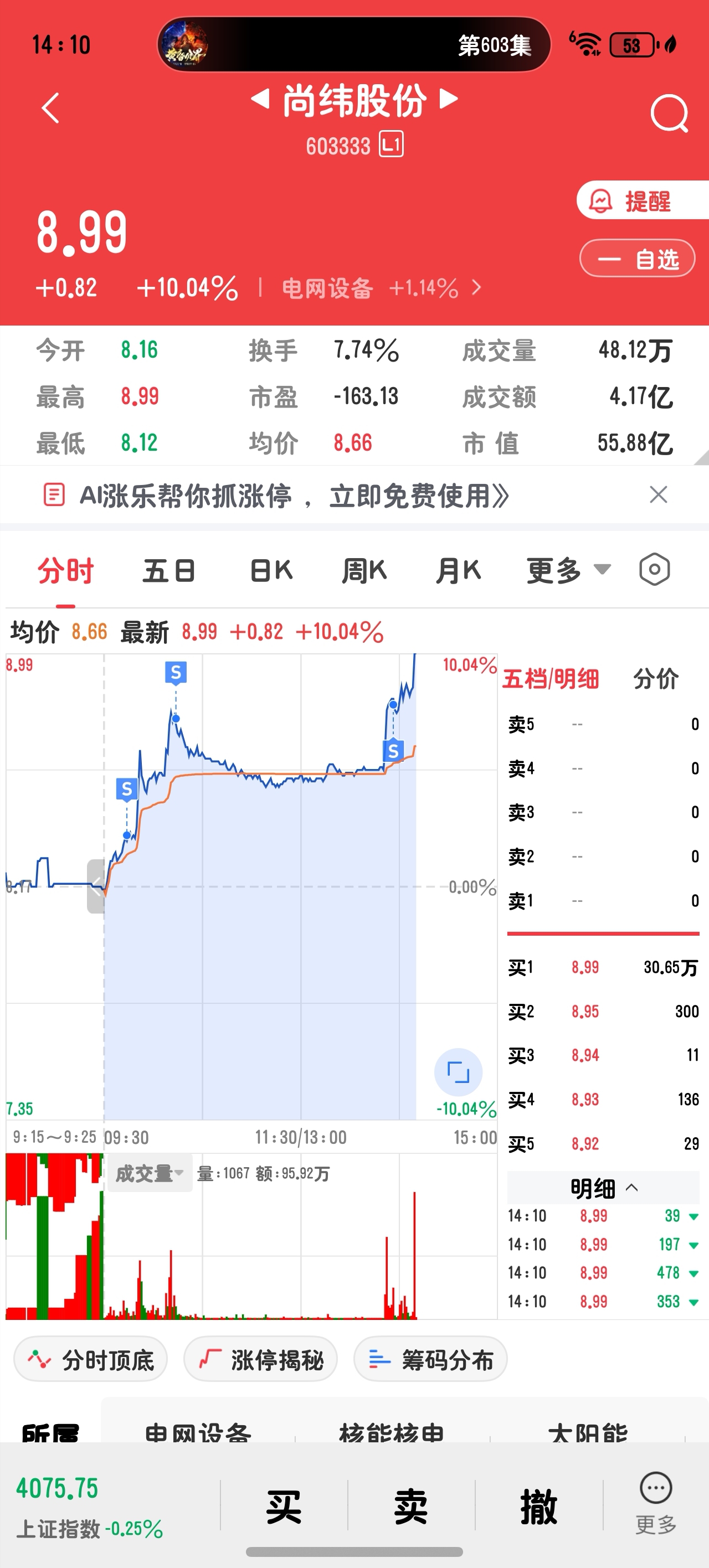 $尚纬股份(SH603333)$ 拿了一百多天,卖完拉涨停哈哈哈