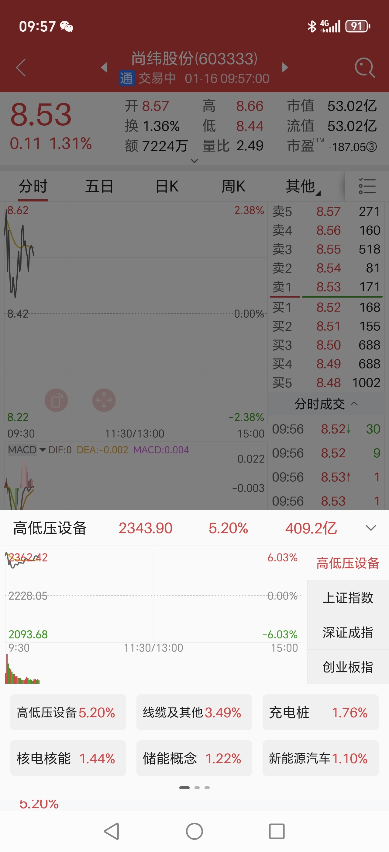 $尚纬股份(SH603333)$ 板块涨五个点了