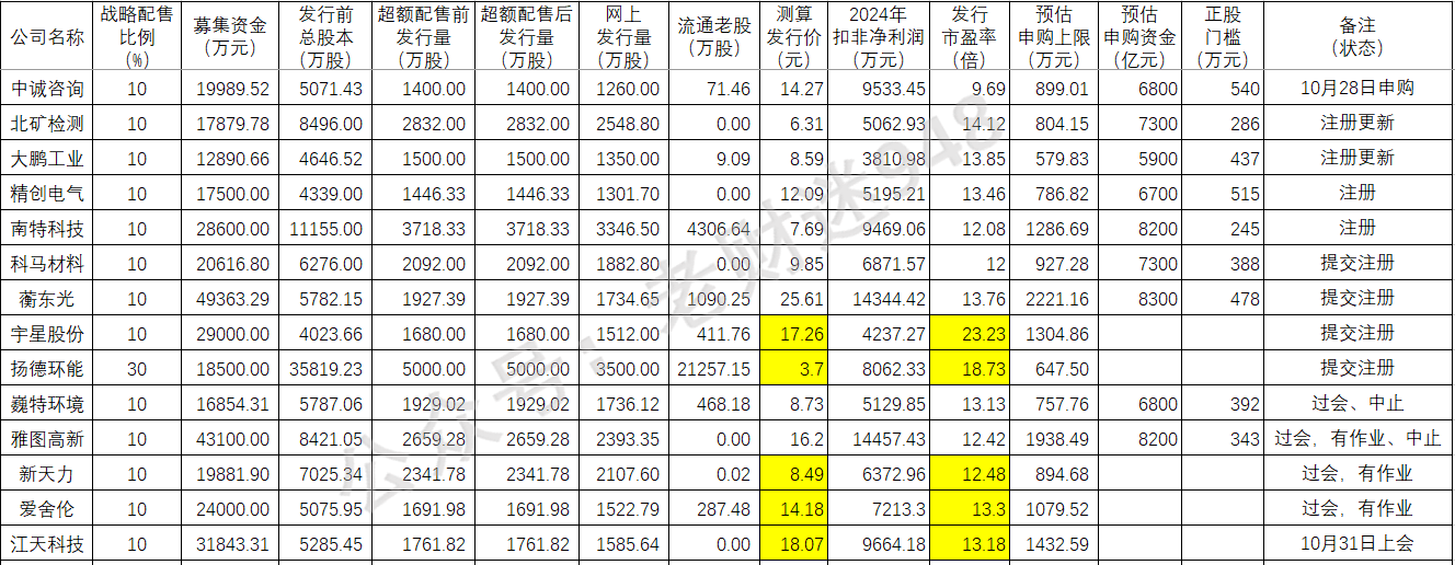 发行价标黄色的对应市盈率偏高,大概率会调整,所以暂不预估可能的申购资金总额。