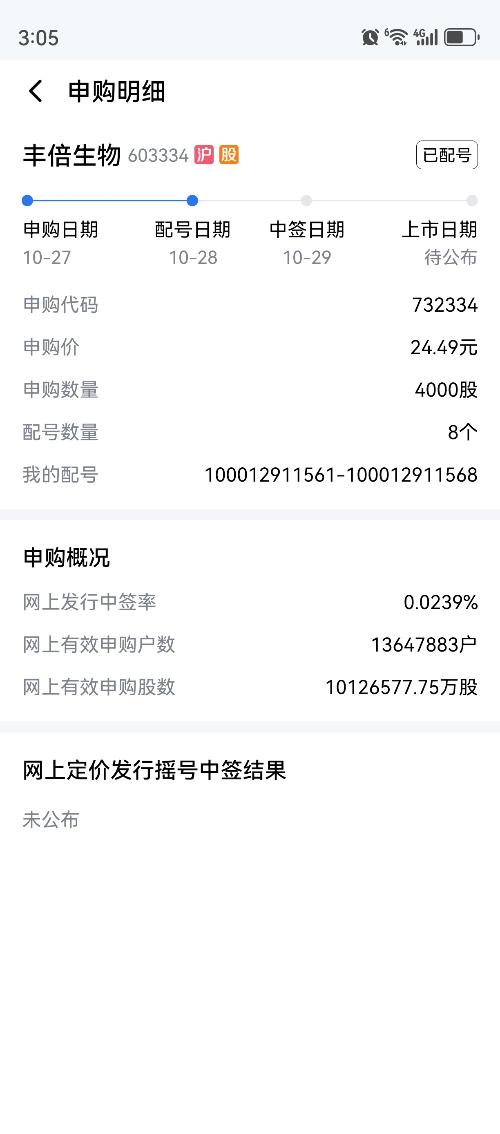 $丰倍生物(SH603334)$  第一次有这个配号一次没中过奖希望来吧