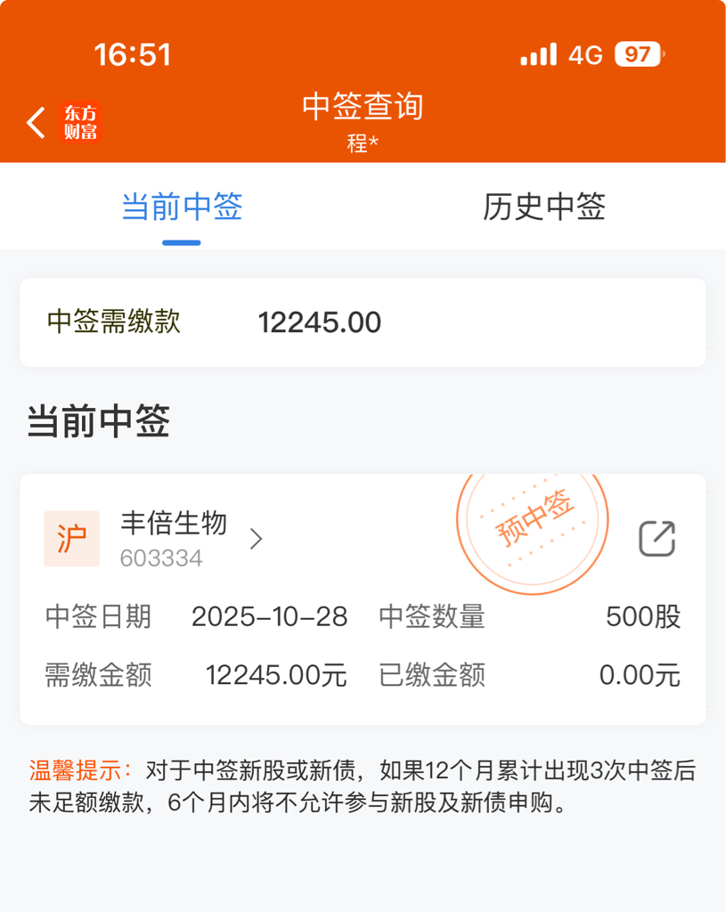$丰倍生物(SH603334)$ 第一次中签,能不能涨到200%