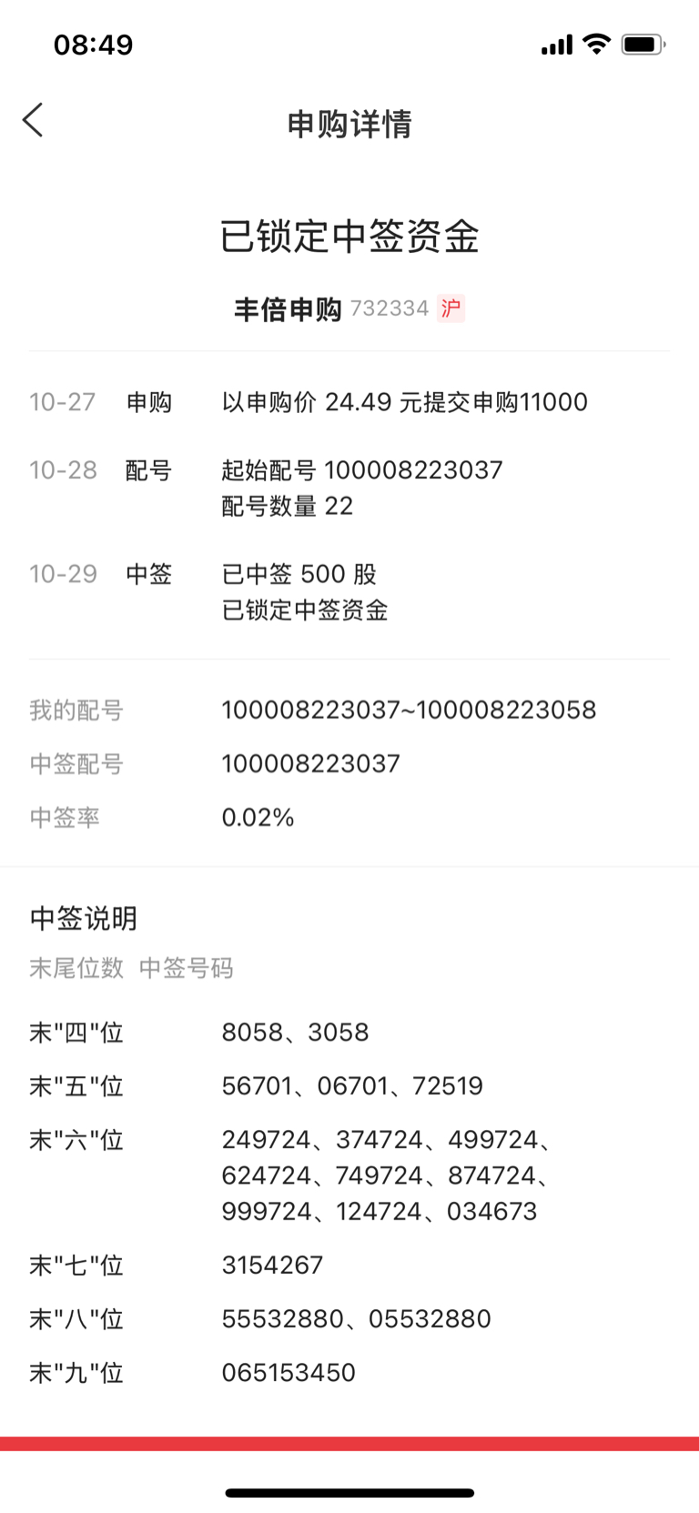 $丰倍生物(SH603334)$ 第四次中签新股!