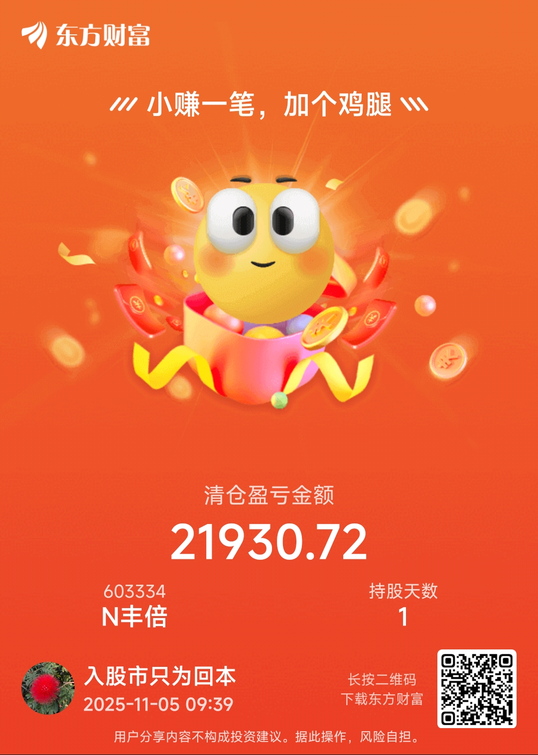$N丰倍(SH603334)$ 太着急了68.4卖了,少赚几千块钱