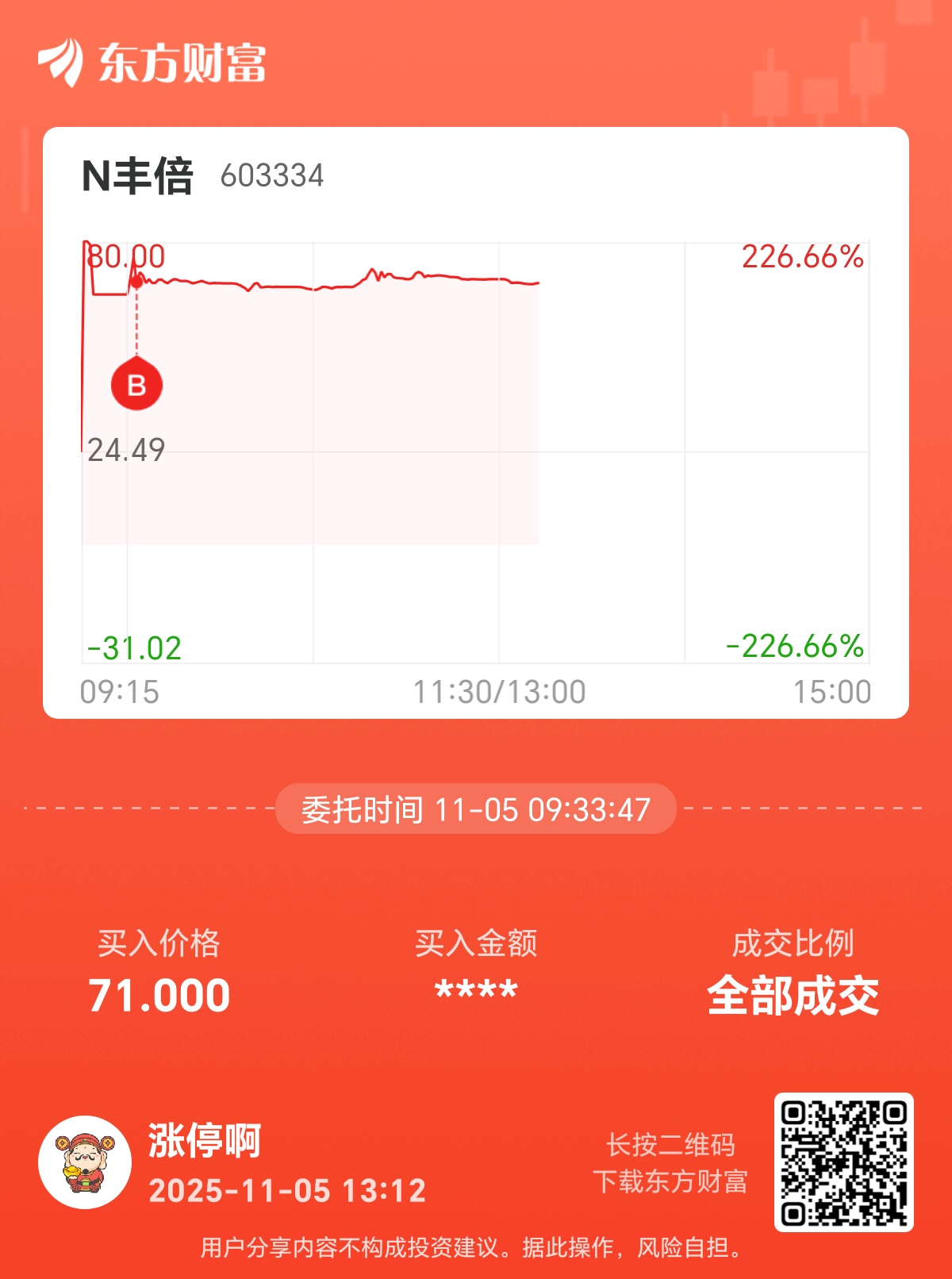 $N丰倍(SH603334)$ 有没大佬比我高的,给我安慰一下