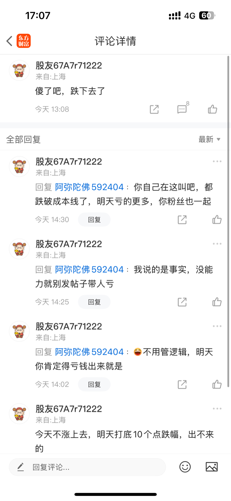 温馨提示: 1.根据《证券法》规定,禁止编造、传播虚假信息或者误导性信息,扰乱证券市场;2.用户在本社区发表的所有资料、言论等仅代表个人观点,与本网站立场无关,不对您构成任何投资建议。用户应基于自己的独立判断,自行决定证券投资并承担相应风险。《东方财富社区管理规定》