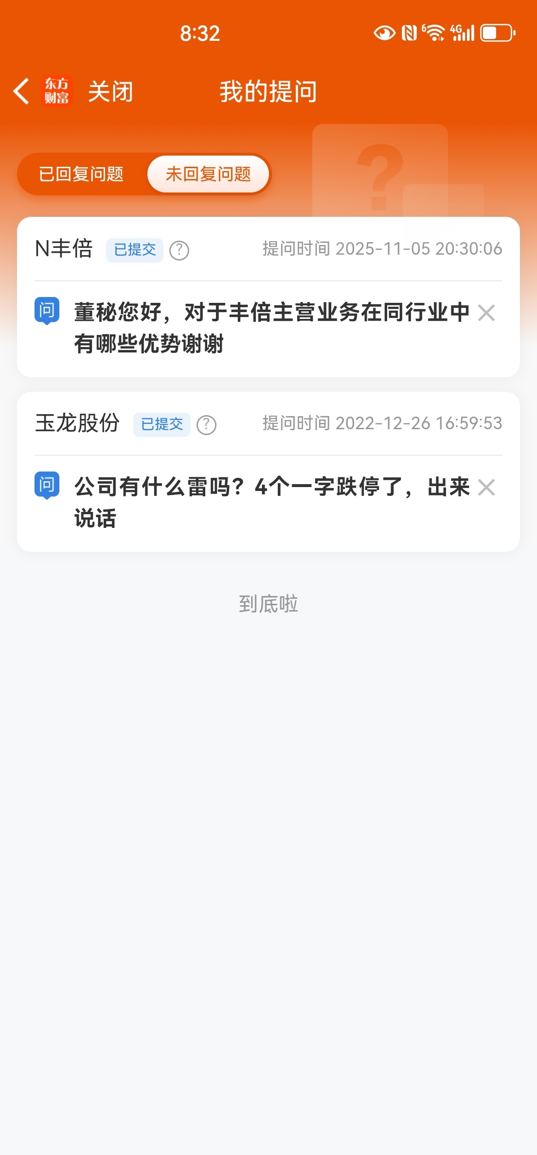 $N丰倍(SH603334)$ 希望董秘能及时回我,前些年玉龙就是因为没有回我,后来它就退市了,希望重视!