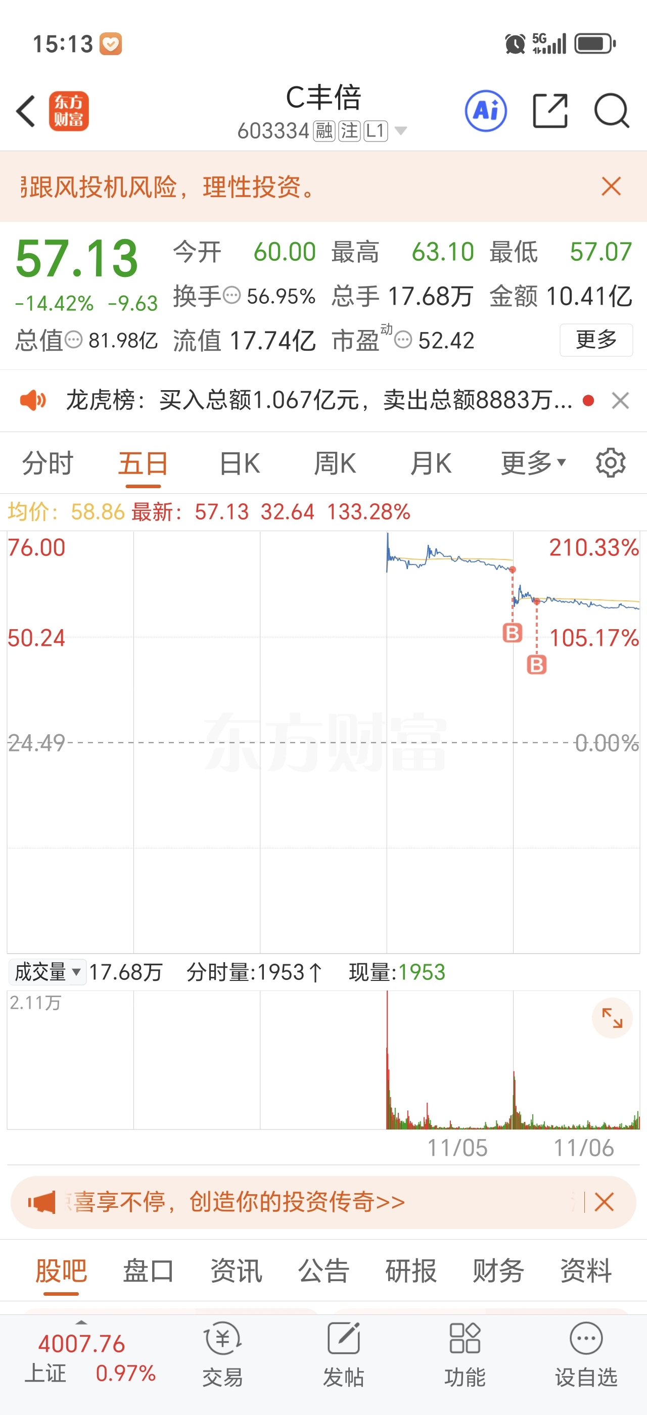 $C丰倍(SH603334)$ 别慌,明天再跌20个点应该就跌不动了。