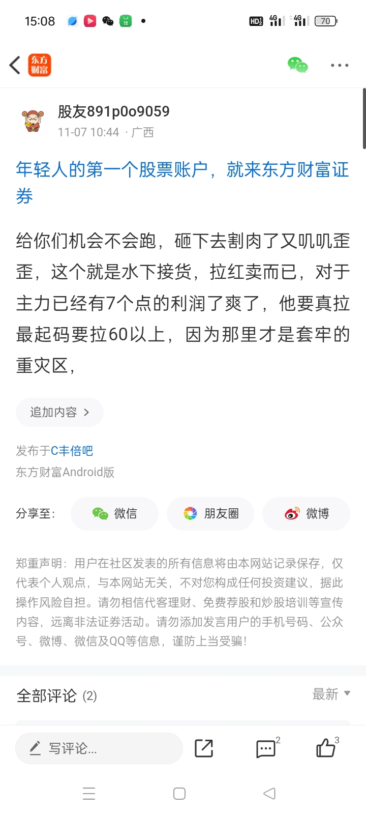 温馨提示: 1.根据《证券法》规定,禁止编造、传播虚假信息或者误导性信息,扰乱证券市场;2.用户在本社区发表的所有资料、言论等仅代表个人观点,与本网站立场无关,不对您构成任何投资建议。用户应基于自己的独立判断,自行决定证券投资并承担相应风险。《东方财富社区管理规定》