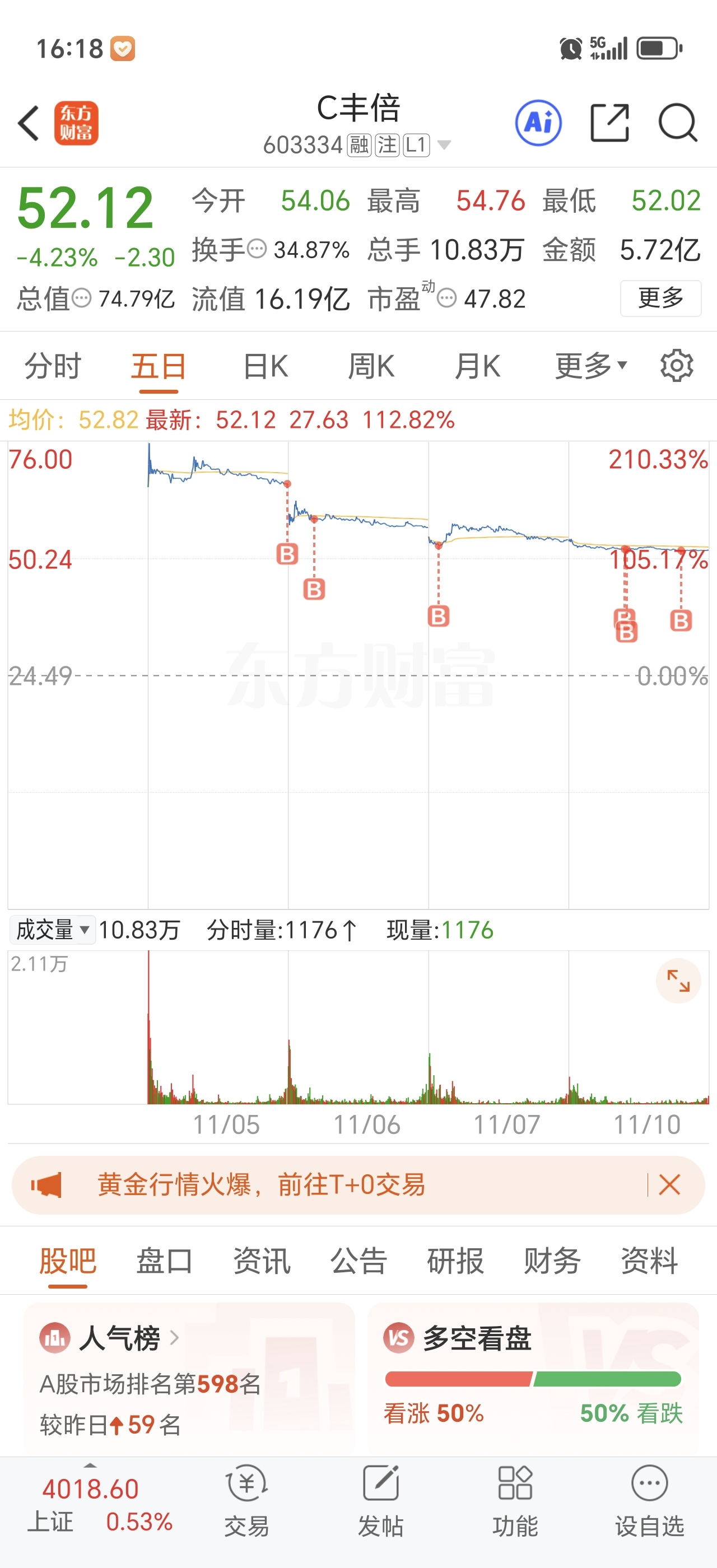 $C丰倍(SH603334)$ 这个月亏了15个点了,就指着新股给我回本呢。