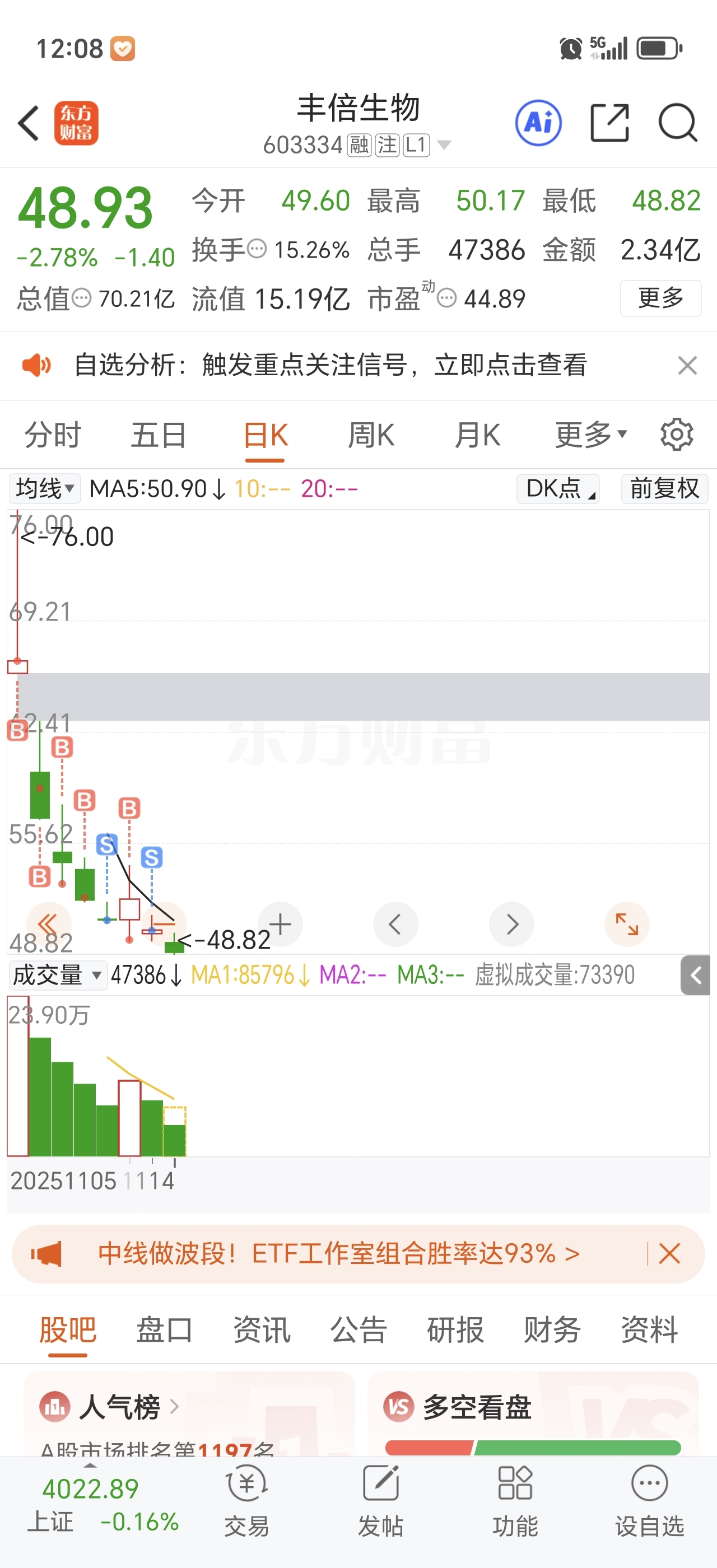$丰倍生物(SH603334)$ 昨天亏了5w割肉了,实在受不了了,太弱了。今天一看果然还在跌。