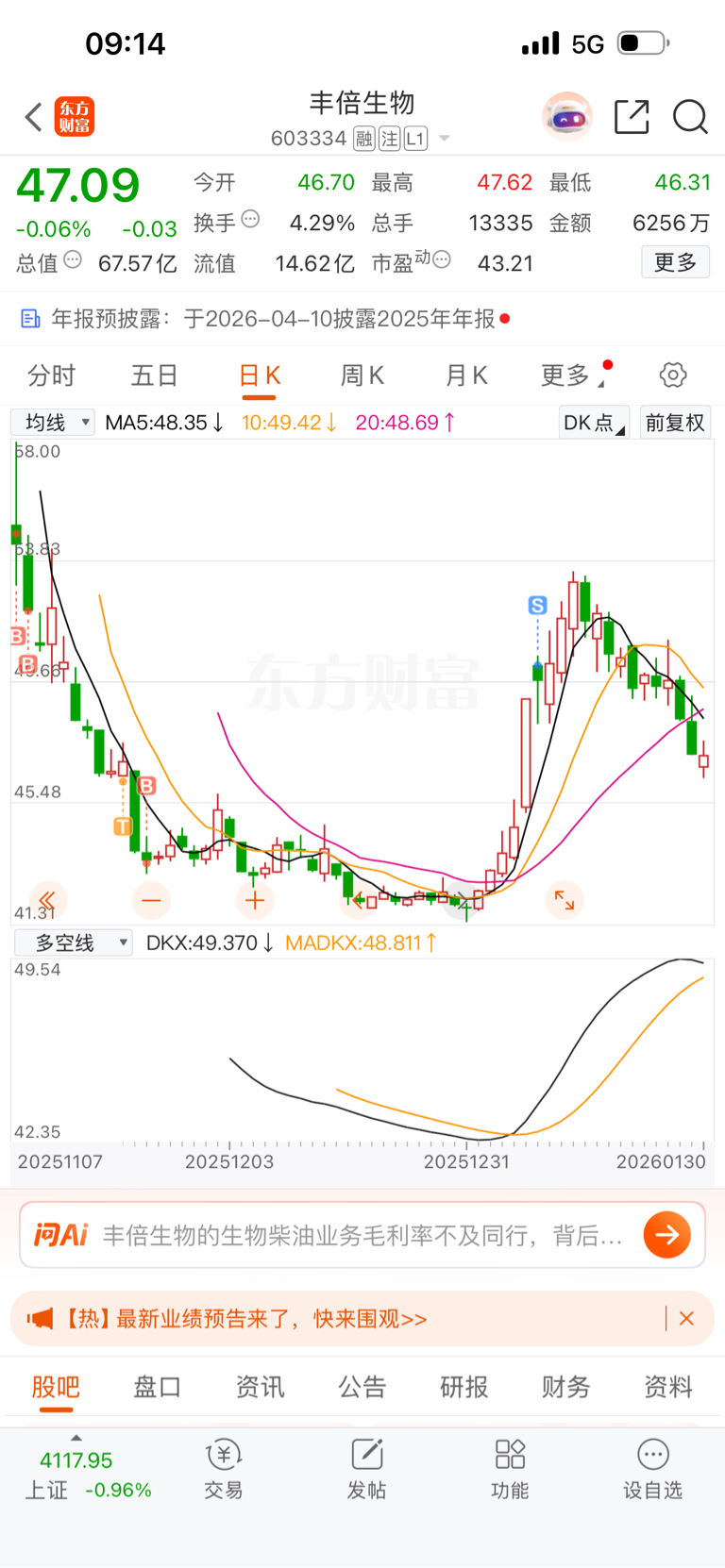 $丰倍生物(SH603334)$ 赚几千走了,还好