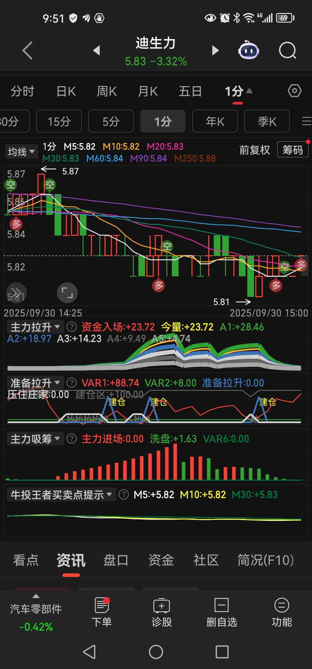 $迪生力(SH603335)$ 分时都没买点果断出