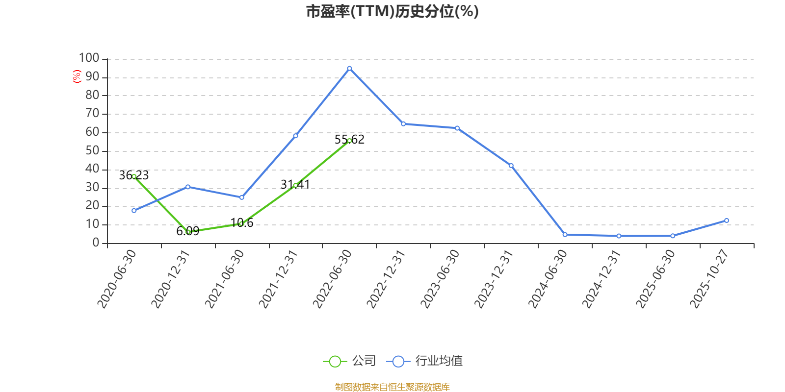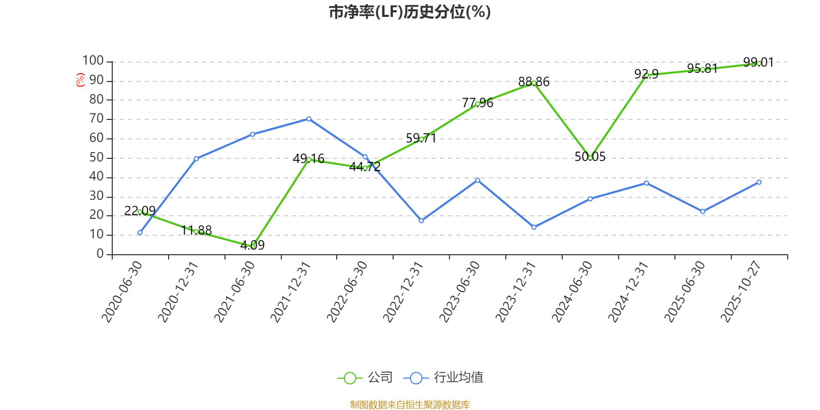 市盈率、市净率为负时,不显示当期分位数,会导致折线图中断。