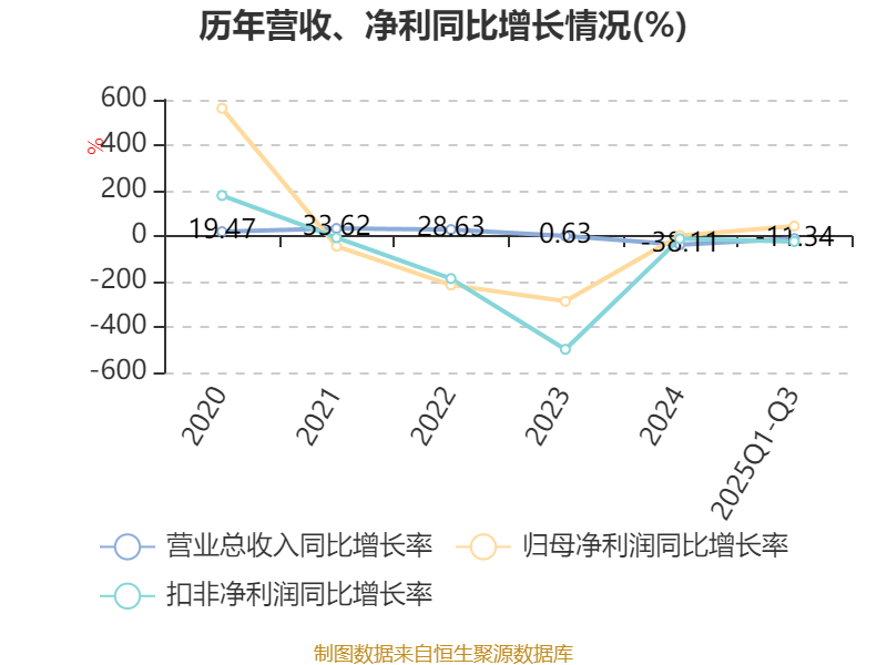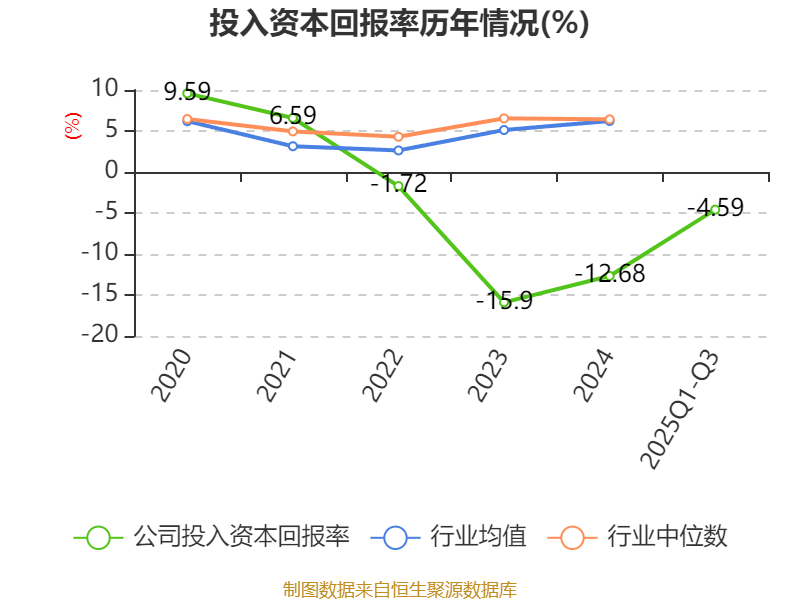 盈利能力方面, 2025年前三季度公司加权平均净资产收益率为-16.26%,同比上升2.61个百分点。公司2025年前三季度投入资本回报率为-4.59%,较上年同期上升2.09个百分点。