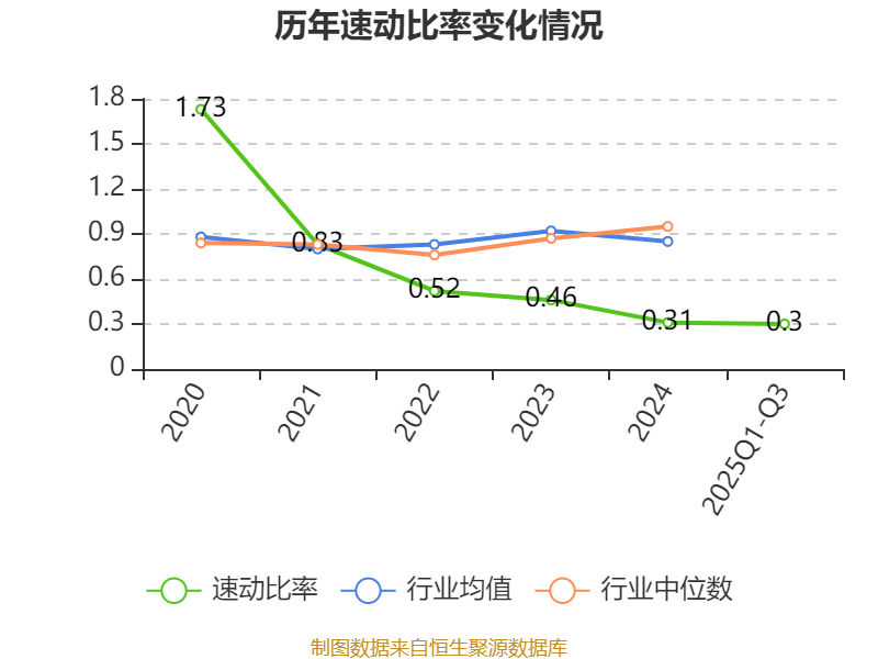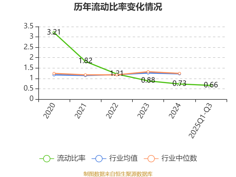 2025年前三季度,公司流动比率为0.66,速动比率为0.3。