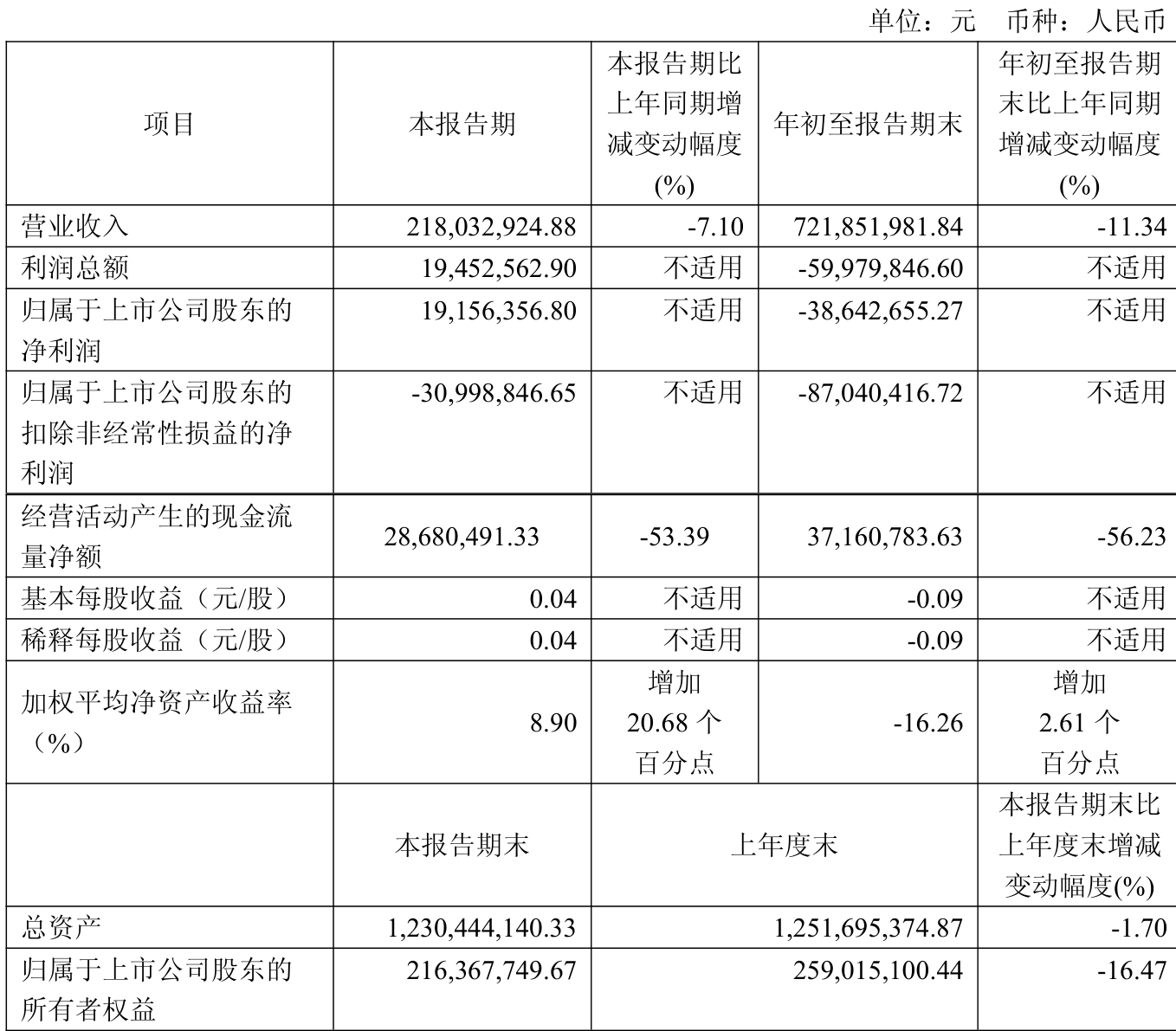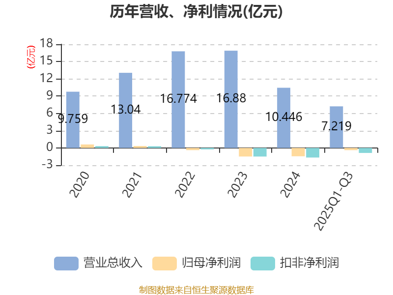 中证智能财讯迪生力(603335)10月28日披露2025年第三季度报告。前三季度公司实现营业总收入7.22亿元,同比下降11.34%;归母净利润亏损3864.27万元,上年同期亏损6927.77万元;扣非净利润亏损8704.04万元,上年同期亏损7020.76万元;经营活动产生的现金流量净额为3716.08万元,同比下降56.23%;报告期内,迪生力基本每股收益为-0.09元,加权平均净资产收益率为-16.26%。