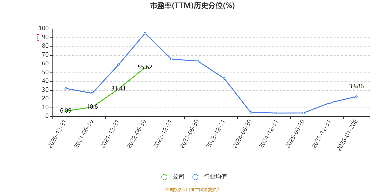 以本次披露业绩预告均值计算,公司近年市盈率(TTM)图如下所示:
