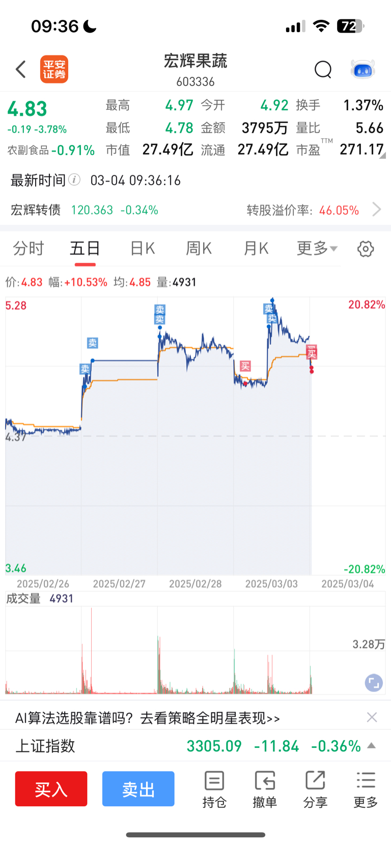 $宏辉果蔬(SH603336)$ 继续接回来