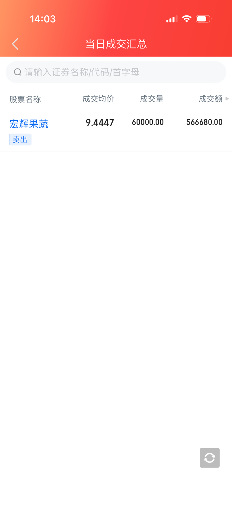 $宏辉果蔬(SH603336)$ 60000股均价处在9.44元