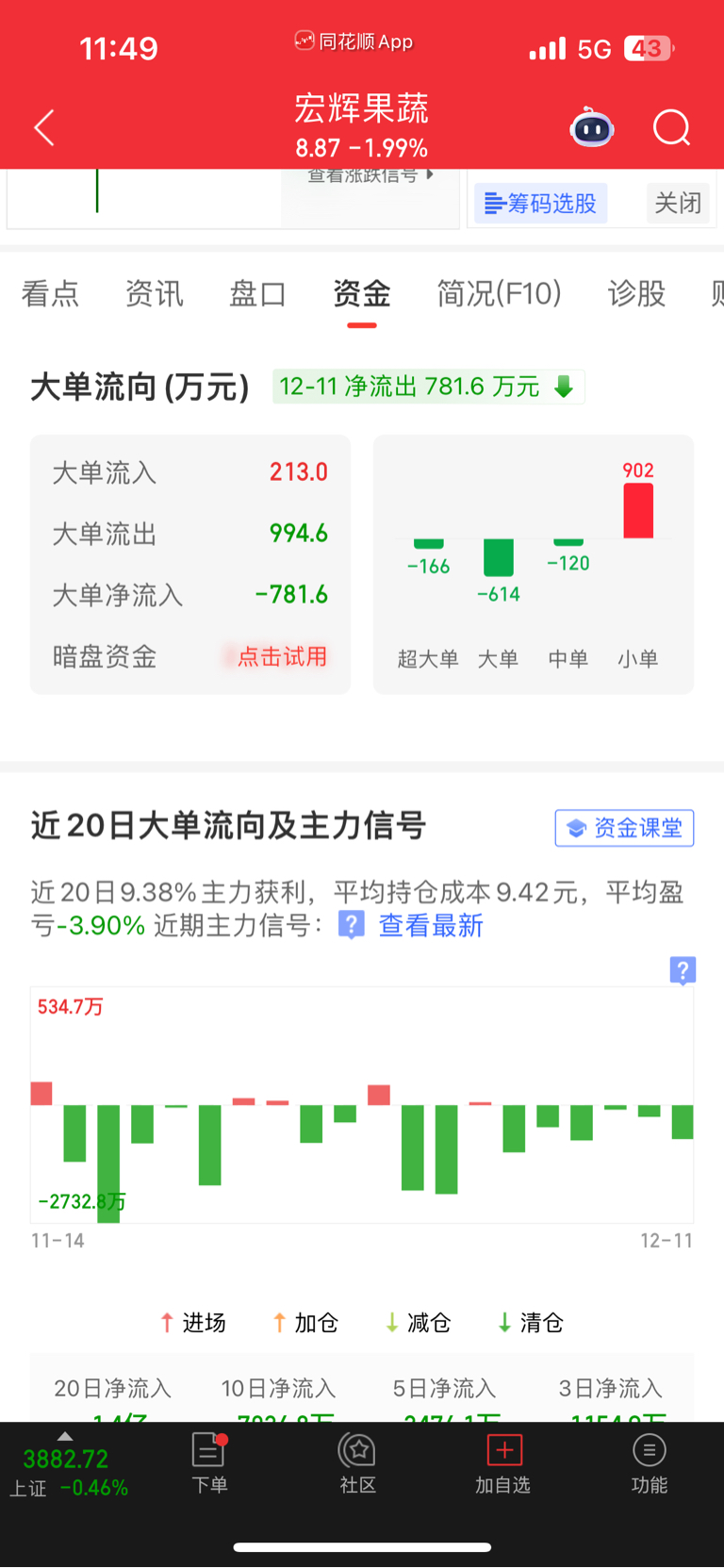 $宏辉果蔬(SH603336)$ 继续卖出