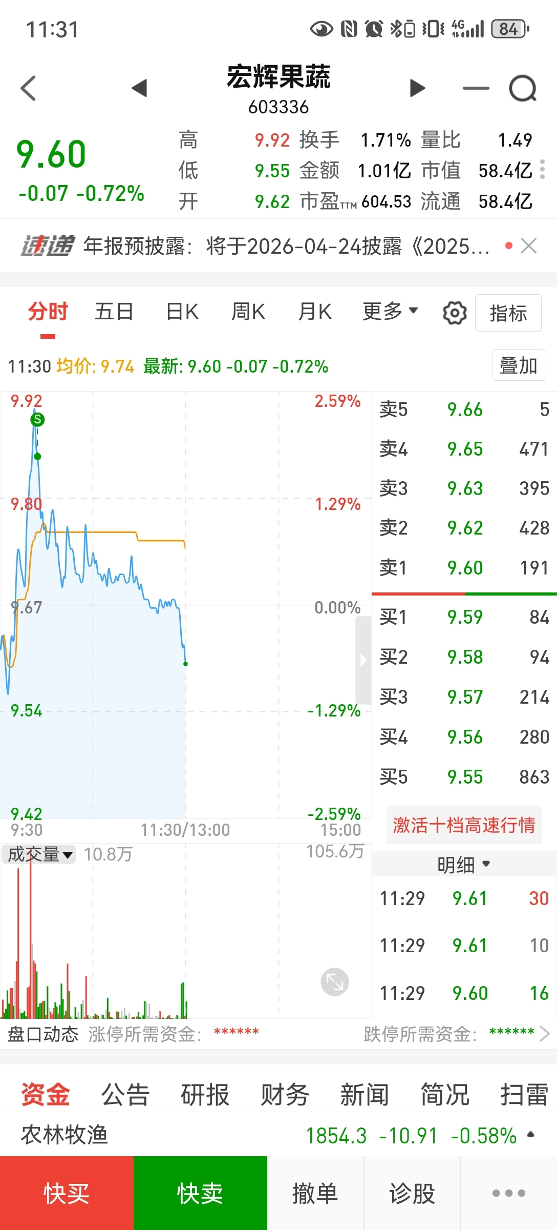 $宏辉果蔬(SH603336)$