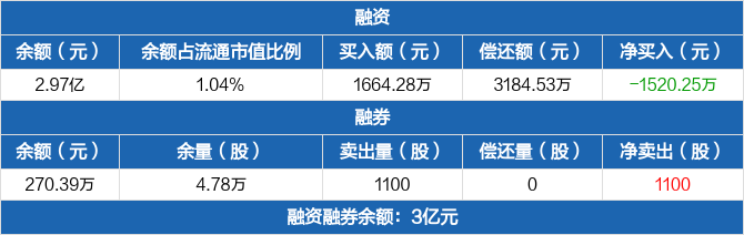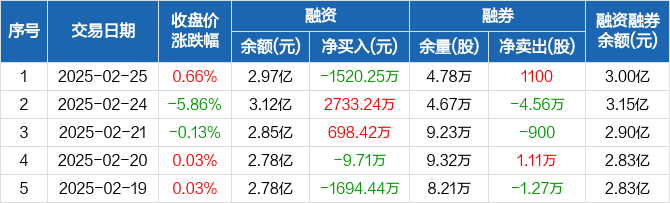 浙江鼎力:融资净偿还1520.25万元,融资余额2.97亿元(02-25)