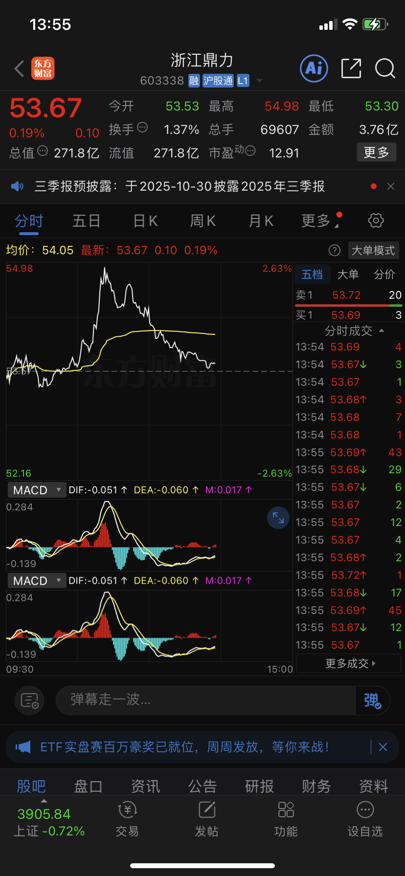 $浙江鼎力(SH603338)$ 这分时走势太难看了