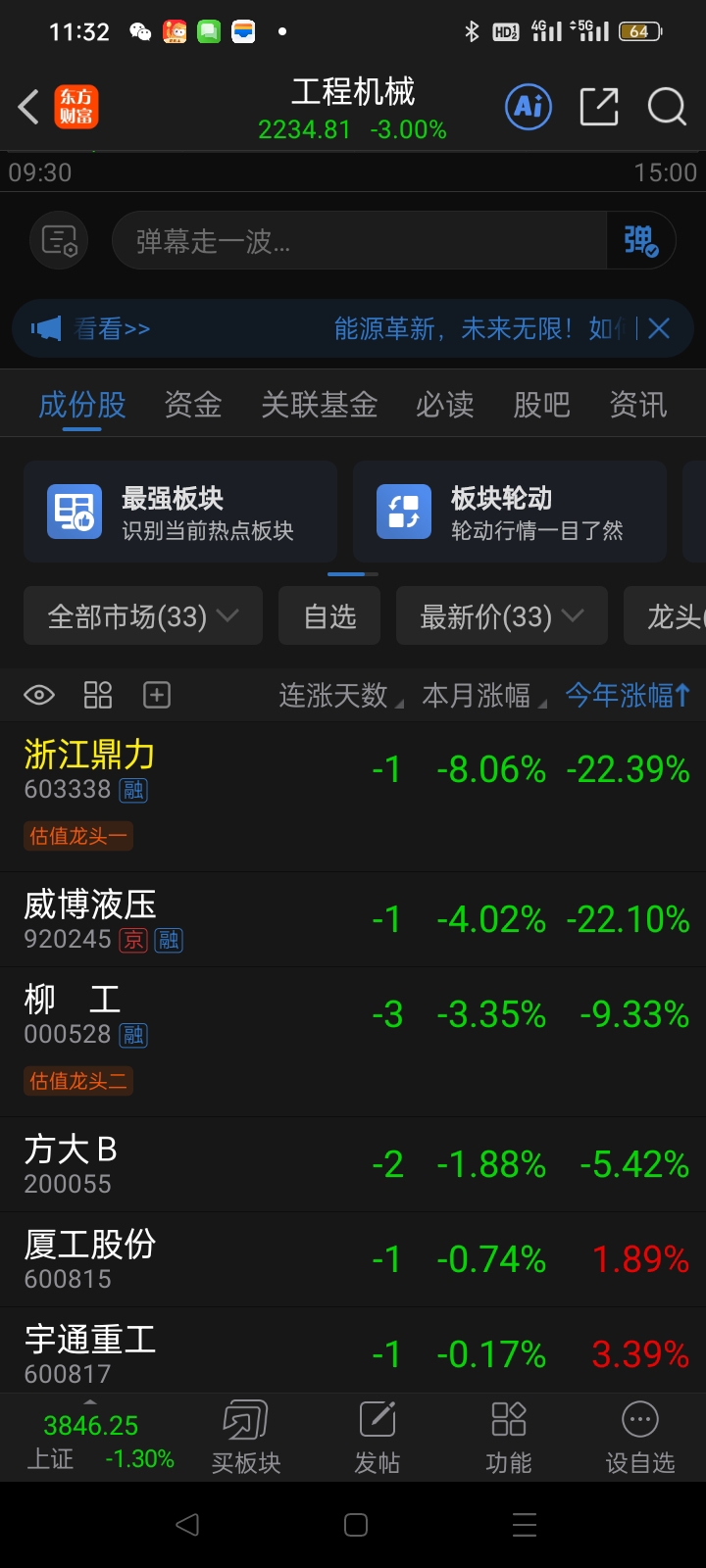 $浙江鼎力(SH603338)$ 晕,今年跌幅第一名