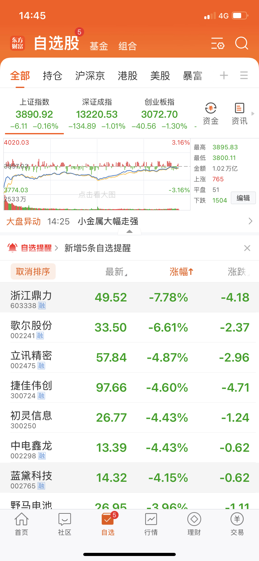 自选股里,就你跌的最多,可是你也没涨过呀