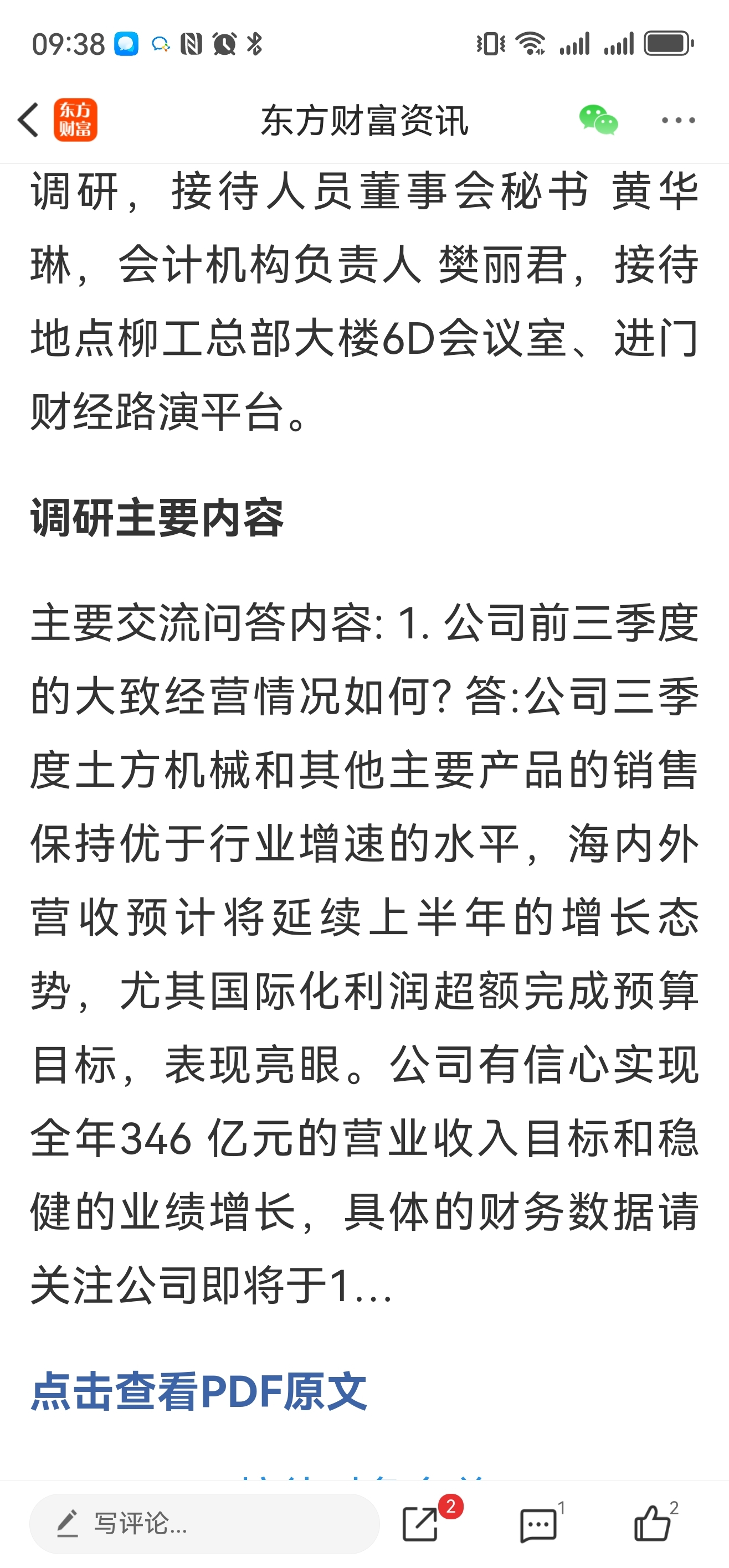 $浙江鼎力(SH603338)$ 昨天柳工接待机构说三季度外贸业绩保持一二季度增长,说明鼎力三季报也差不了