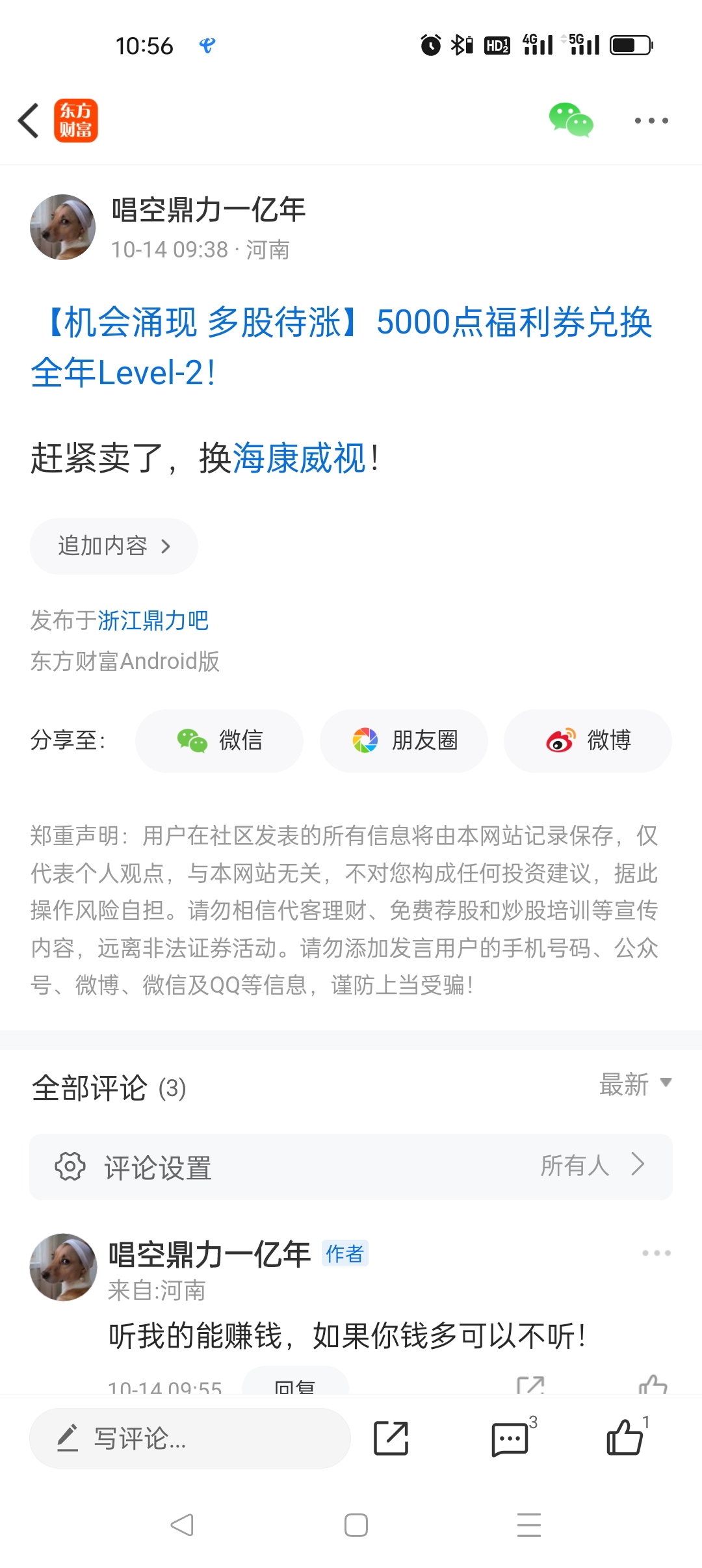 温馨提示: 1.根据《证券法》规定,禁止编造、传播虚假信息或者误导性信息,扰乱证券市场;2.用户在本社区发表的所有资料、言论等仅代表个人观点,与本网站立场无关,不对您构成任何投资建议。用户应基于自己的独立判断,自行决定证券投资并承担相应风险。《东方财富社区管理规定》