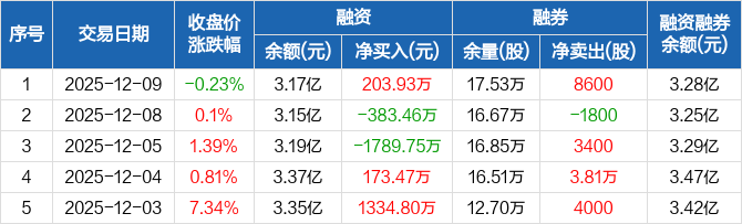 浙江鼎力:融资净买入203.93万元,融资余额3.17亿元(12-09)