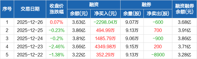 浙江鼎力:融资净偿还2298.04万元,融资余额3.63亿元(12-26)