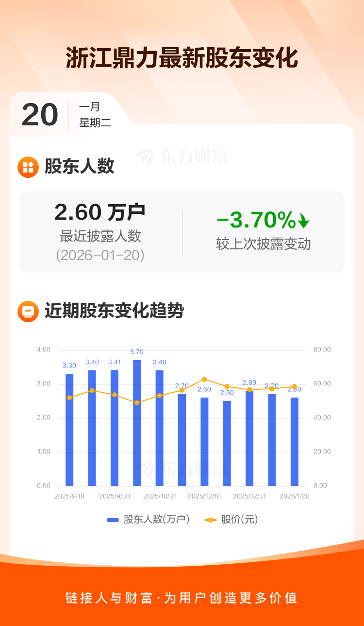 浙江鼎力:截至1月20日最新股东户数2.60万户,较上期减少3.70%