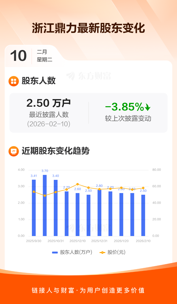 浙江鼎力:截至2月10日最新股东户数2.50万户,较上期减少3.85%
