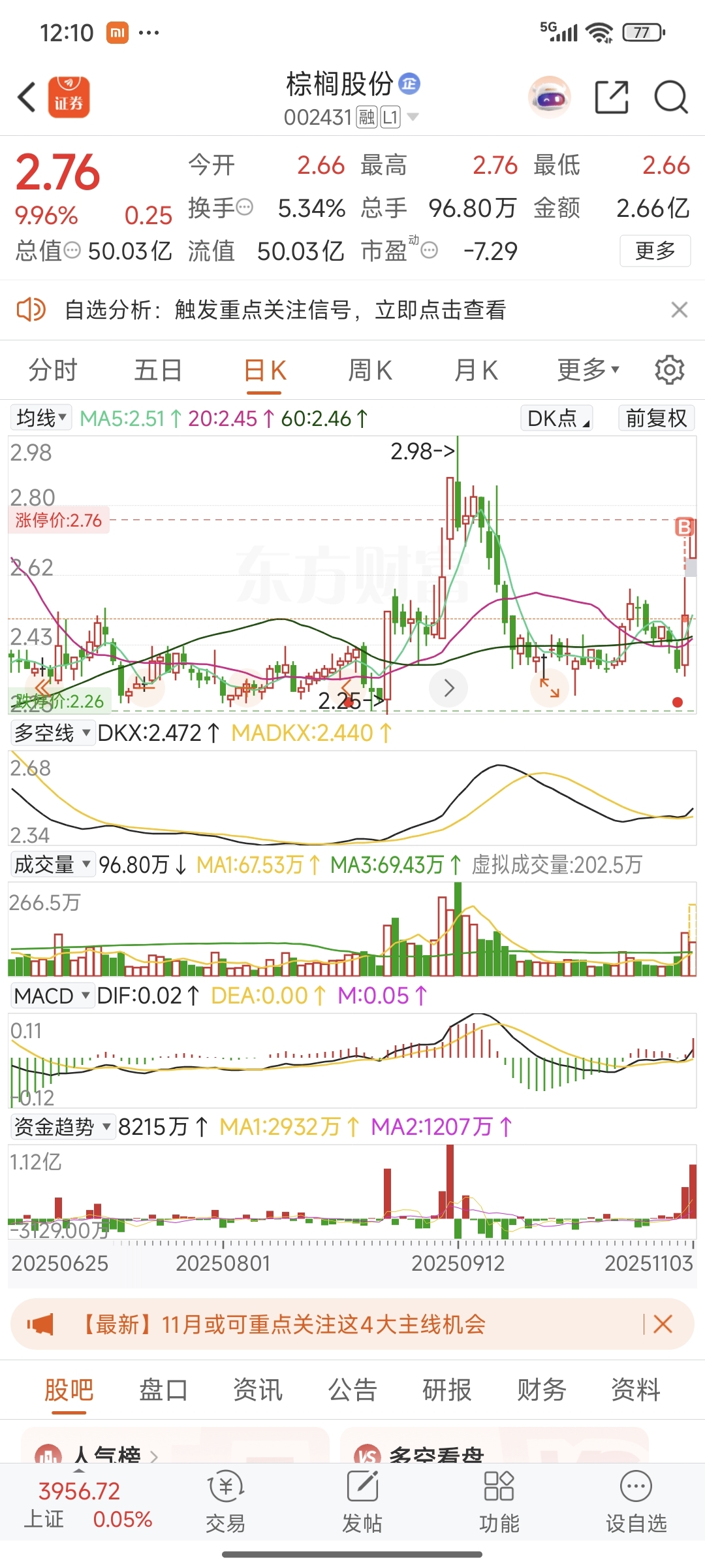 $四方科技(SH603339)$ 这个都是一个人一个人为单位的,不要在里面耗了,我耗了两个月了,星期五出来一半买了别的,星期一涨停,今天全部清仓