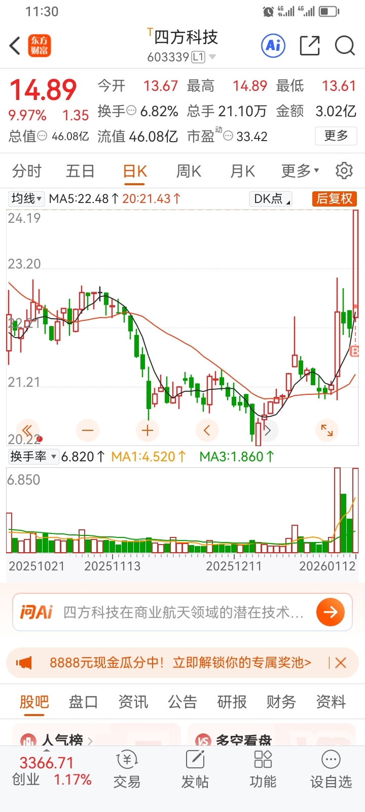 $四方科技(SH603339)$ 万万没想到你会涨停,开板必加仓