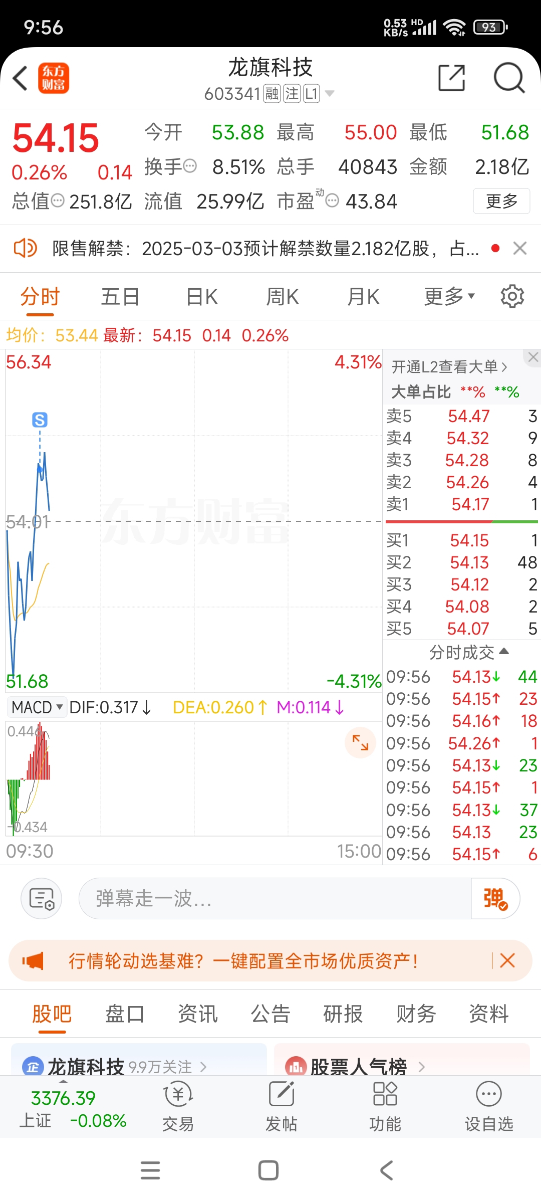 $龙旗科技(SH603341)$ 54.71走了